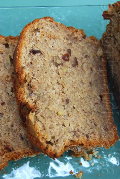 Pain aux bananes avec noix de coco, dattes et noix de grenoble